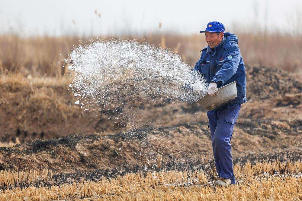农户自行撒肥料、播种。