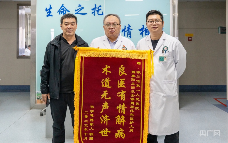 银川市第一人民医院胃肠外科医师团队询问患者术后情况(央广网记者 齐平 摄)