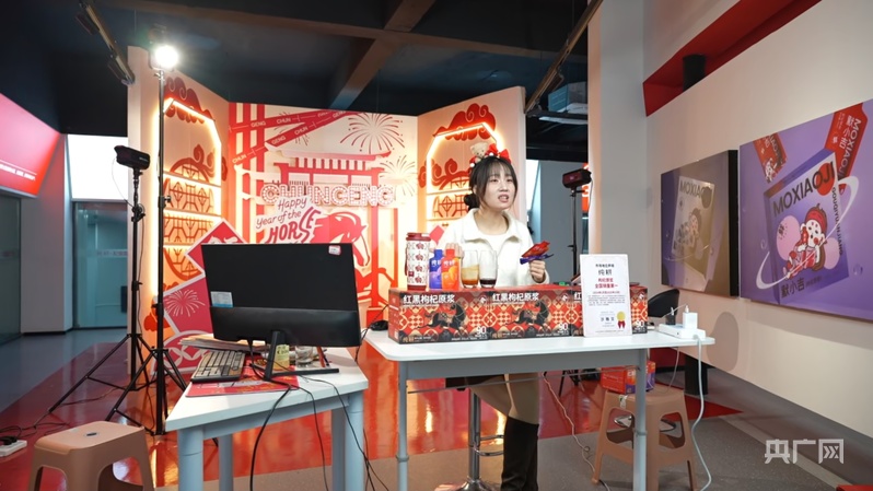 企业培育的专业主播正通过直播平台推介产品(央广网发 黄成虎 摄)