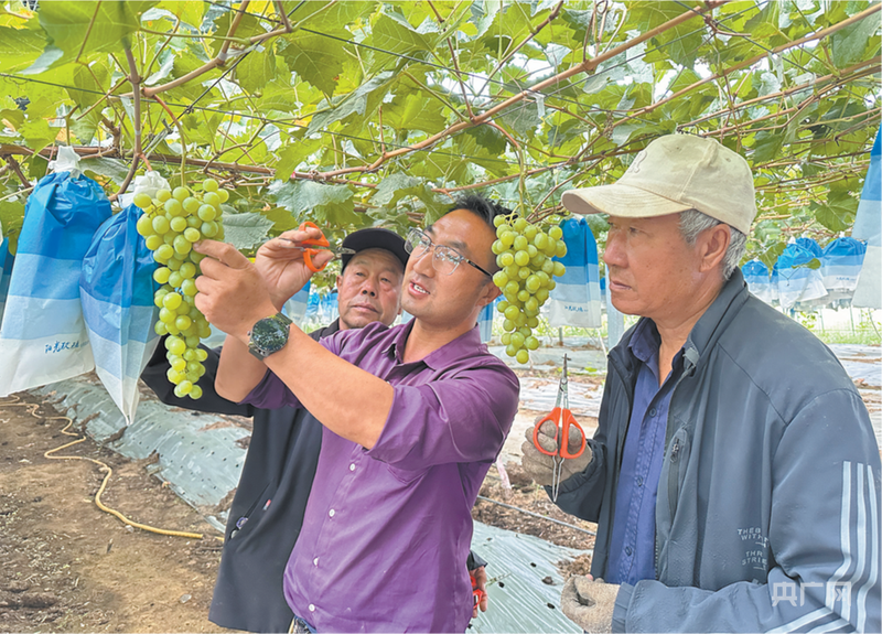 如今,在科学管理下,葡萄树“脱胎换骨”,挂果量较去年翻番,疏果后预计产量达1万公斤。西河桥村党支部书记赵路告诉记者:“去年,在控制产量的情况下,我们的葡萄获得了1万元收益。今年收益预计能达到5万元。”