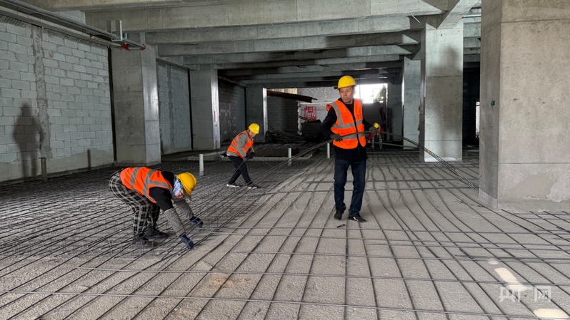 现场工人正在铺设钢筋(央广网发 马添 摄)