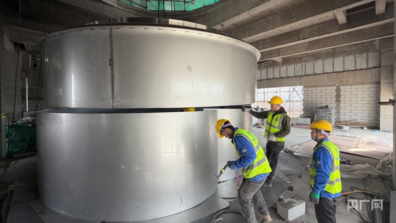 施工人员对布袋罐进行安装(央广网发 马添 摄)