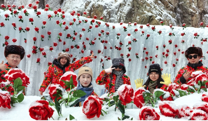 游客在冰封玫瑰前驻足打卡(央广网发 活动主办方供图)