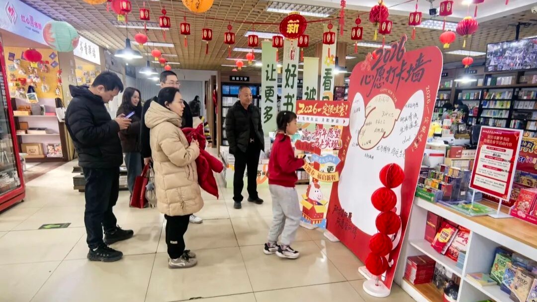 红红的灯笼、喜庆的中国结将书店装点得年味十足