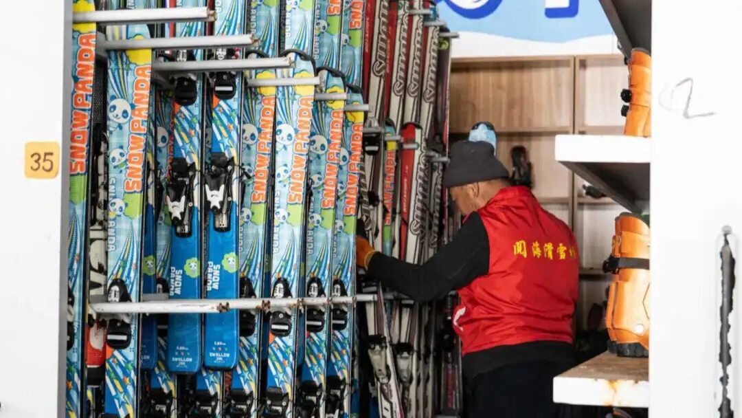 阅海滑雪场内,工作人员正在忙碌