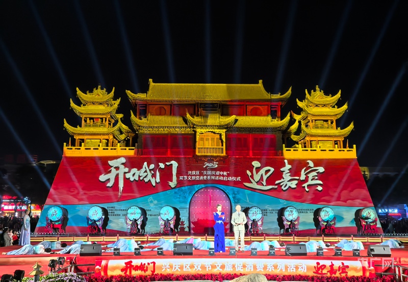 央广网银川9月30日消息(记者齐平 见习记者吴佳仪 实习记者王煊赫)9月29日晚,宁夏银川兴庆区玉皇阁—鼓楼灯火璀璨、人流如织,“开城门 迎嘉宾”2025年兴庆区“庆国庆迎中秋”双节文旅促消费系列活动在此启幕。“盛世华诞·梦回兴庆”沉浸式演绎与“天幕为卷汉印千年”无人机烟花秀同步上演。