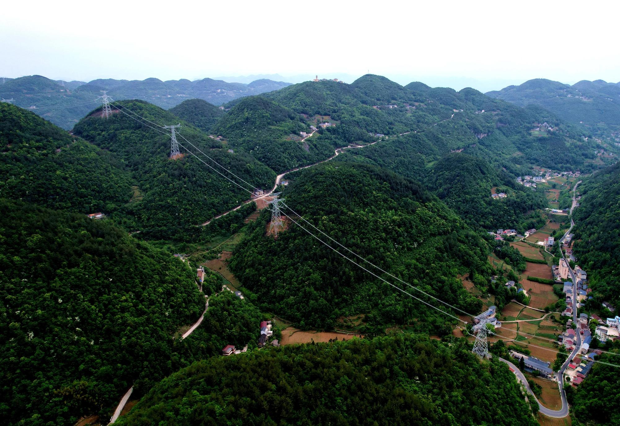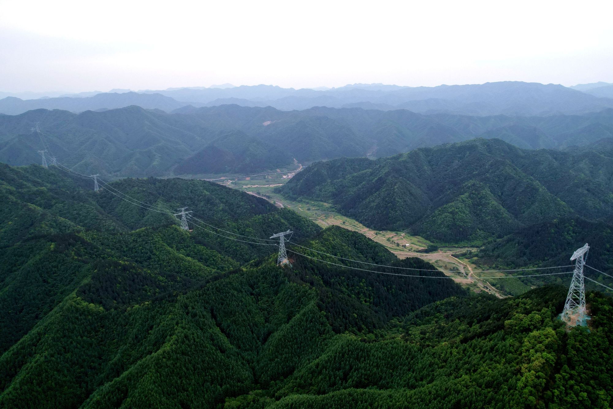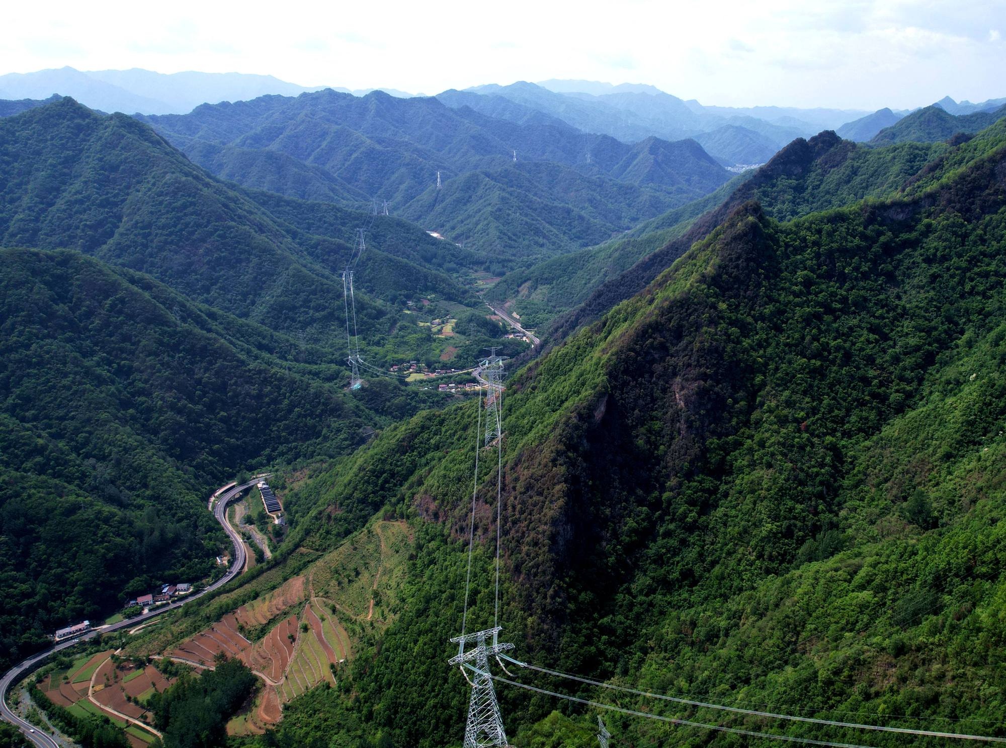 陕西省汉中市留坝县,俯瞰“宁电入湘”工程陕西段