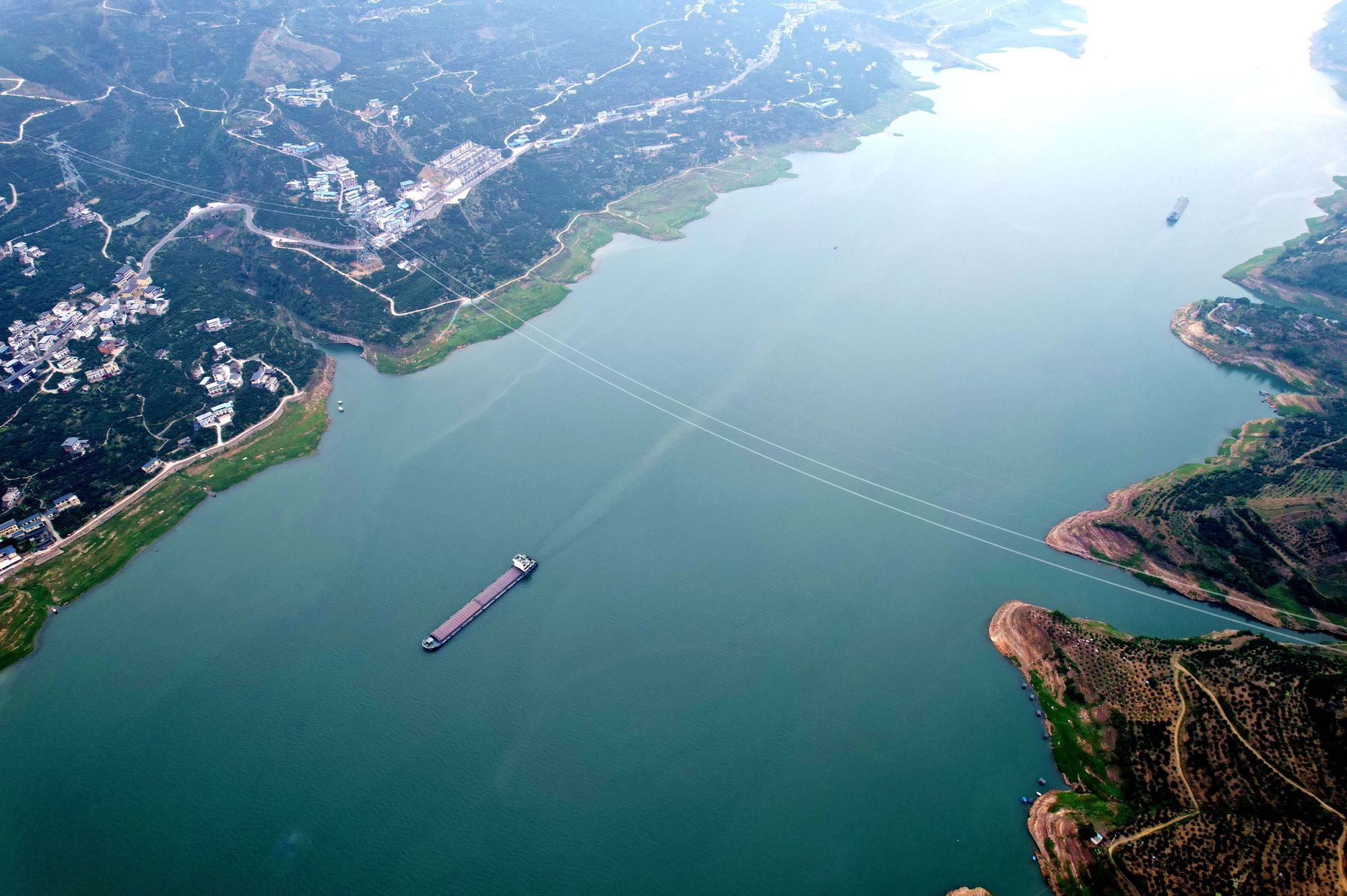 重庆市奉节县,俯瞰“宁电入湘”工程跨越长江的重庆段